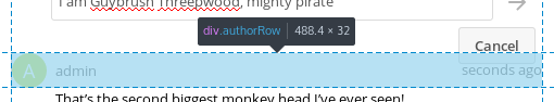 The Cancel button shown when a comment is edited overflows in the next comment, as can be seen in the screenshot below: