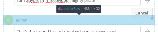 Besides that, the Delete icon is aligned to the top and right border of the comment element, and it has no padding nor margin. When the cursor enters the comment element on the top right the Delete icon appears immediately under the cursor, which also feels strange; it would be better if it had some margin so the icon appeared slightly before the cursor was on top of it.