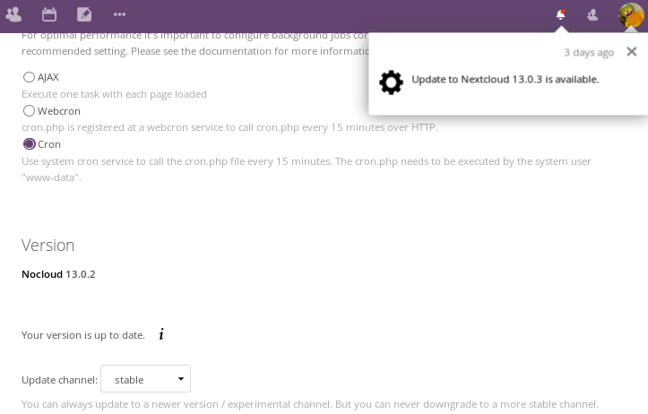 - updatenotification: 1.3.0