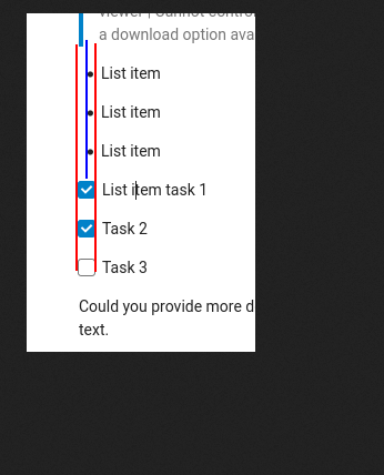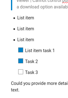 I would agree, however this is not possible without hacking one way or the other: And this is something which – if at all – we should do separately. :) In the usual cases, bulleted lists and task lists might not immediately follow each other, so it’s not so bad for now. |