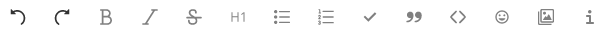 Nice idea! I gave it a try, but found the written style ("Bold", ...) to be much clearer. Now that all content fits on mobile screens (at least for english), I'd prefer to keep it that way. Here's how it looked with the buttons: |