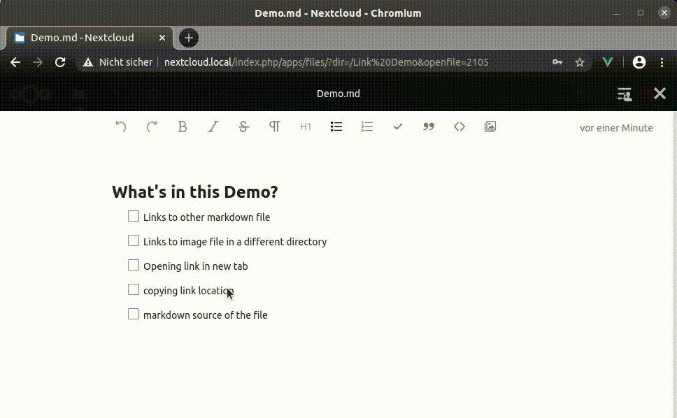 also take into account `ctrl` keys. Use the href from html rather than markdown. This is an actual link that will work in nextcloud. Signed-off-by: Azul <azul@riseup.net>