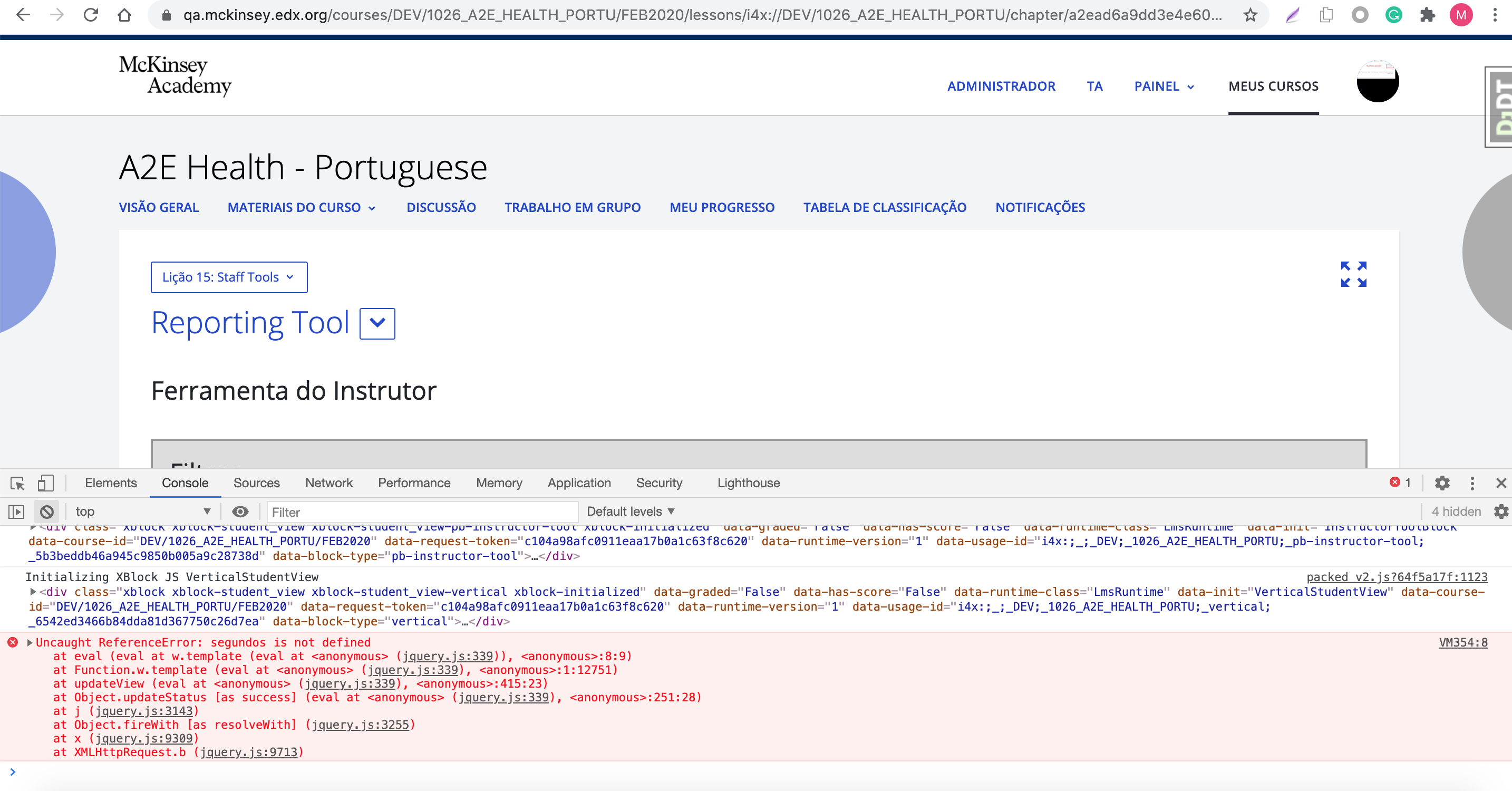 when we load the instructor tool for portuguese, the following error message shows: