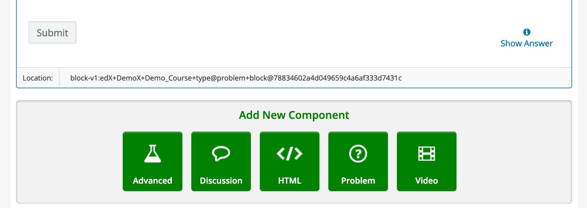 Hi Steve thanks for submitting this. I don’t believe this is something we would want to show in components in Studio even though it streamlines certain use cases such as the in-video quiz. I’d sooner want to explore ways to make the authoring for this component easier than expose this ID on all components. I’m marking this closed for now. In the future when we get to revamp Studio this is the kind of thing I’d expect would be an easy plugging to see in the authoring experience. |
