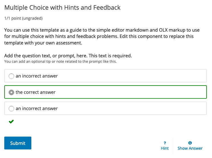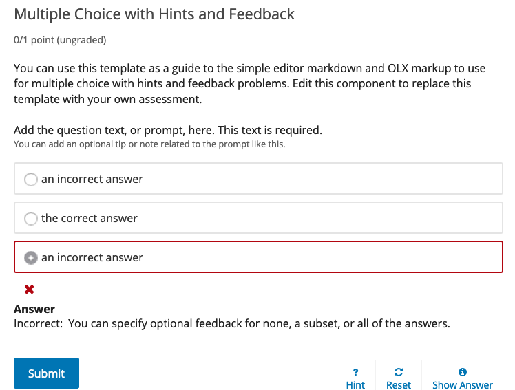submittedclass to mark radio/checkbox items which were submitted as answers during the previous attempt.This allows us to style these options differently in LabXchange.
