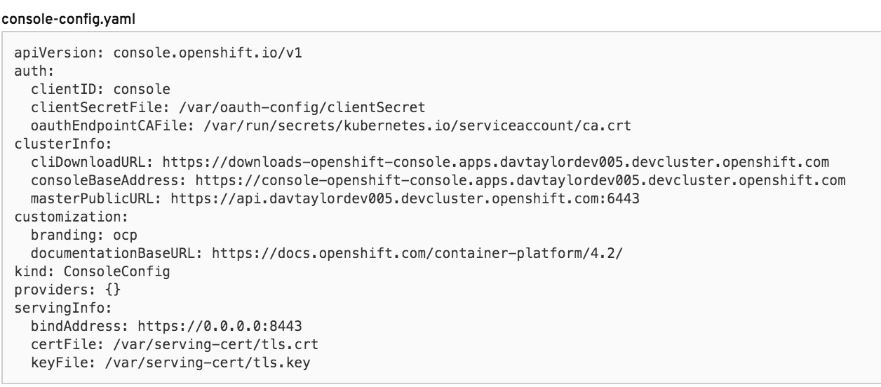 Something like this could be worth discussing: apiVersion: console.openshift.io/v1