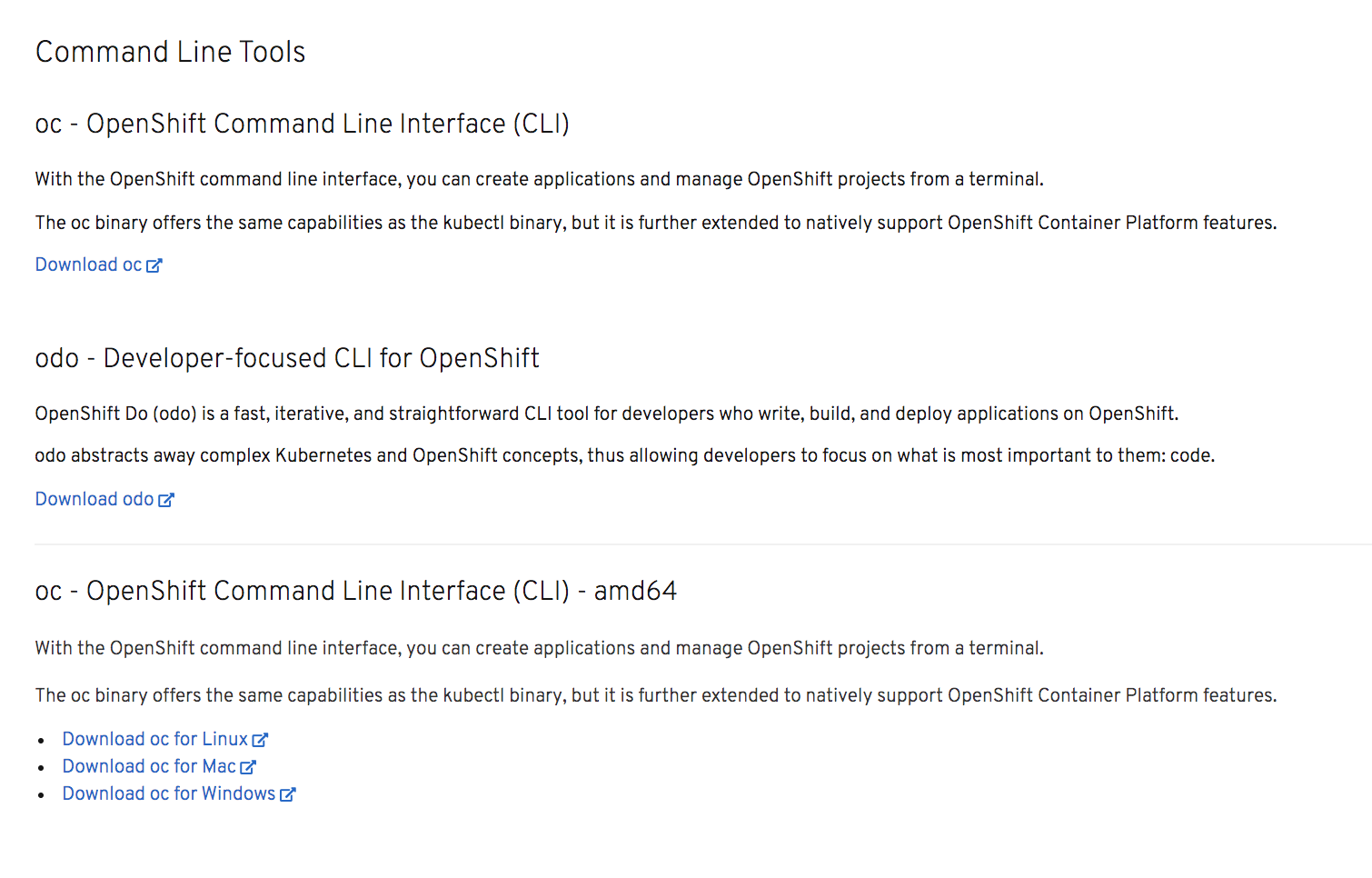 Or we want a direct link for each platform in the console's "Command Line Tools" page ? |