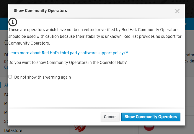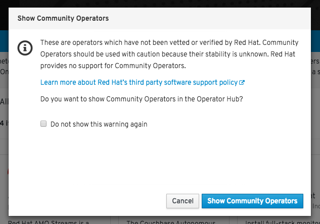 MessageDialogisn't compatible with console modal styles, and there isn't a way to add the necessary intermediate divs using theMessageDialogcomponent to fix this bug. TheMessageDialogis also a third kind of dialog in the console and the only place we use it. We used to only have one modal.We want to switch to patternfly-react components, but we should change all of the modals at once. Having a mix of dialogs is going to lead to an inconsistent user experience, more maintenance, and bugs like this.