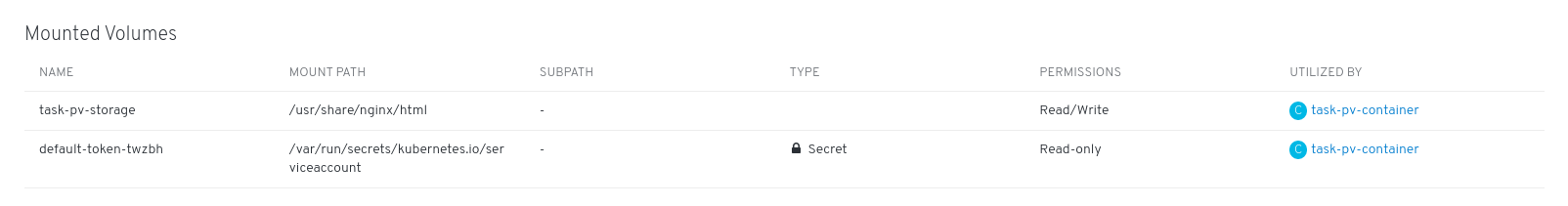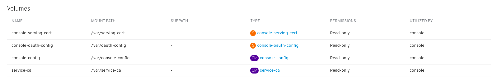 Volume name isn't always the same as the secret name, so we should display both. The links should be like Make the actual name of the object the link text. This is consistent with other links throughout the console. Thanks! |