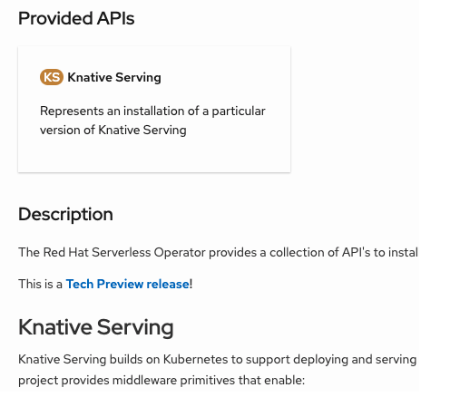 My initial take is that this particular Knative Serving operator just happens to use h1 styling for that "Knative Serving" text but several other operators I checked mostly used h2 or smaller. My inclination would be to not update our existing styling to accommodate this particular operator's description hierarchy. |