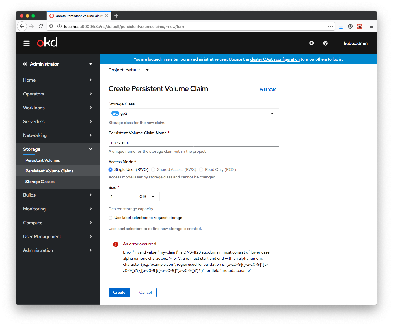 Bug 1782811: Let server do validation of PVC name #3775