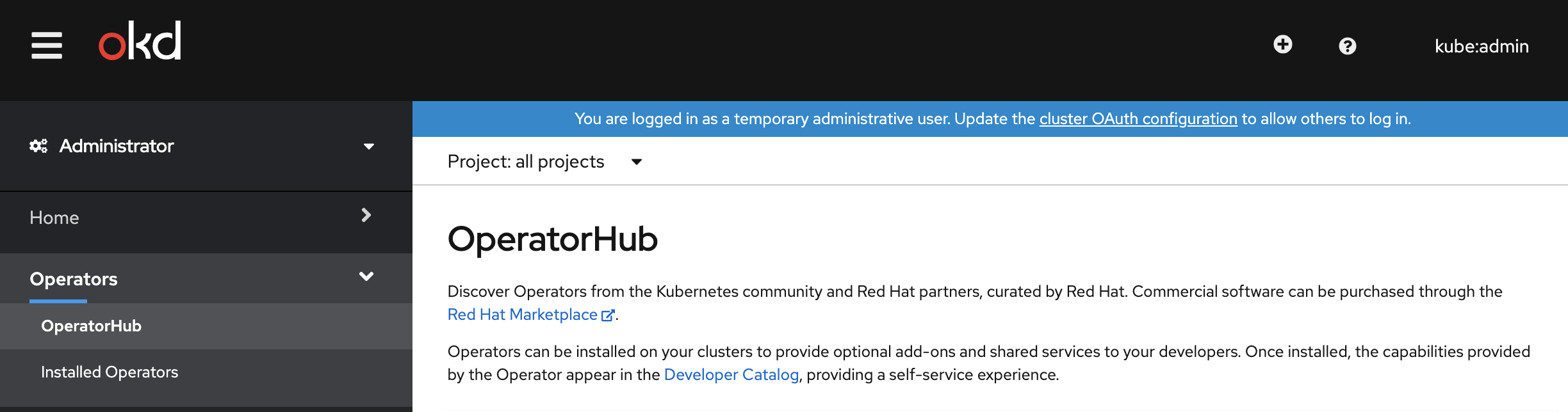 @rebeccaalpert Can you add the external link icon to the right of the "Open Marketplace" link? This helps demonstrate to users that this link opens a new window for the new application vs the Developer Catalog link will navigate within the same application. |