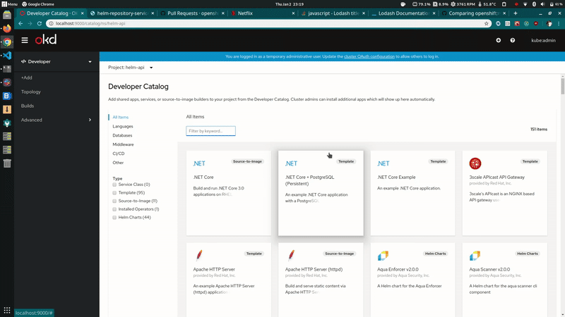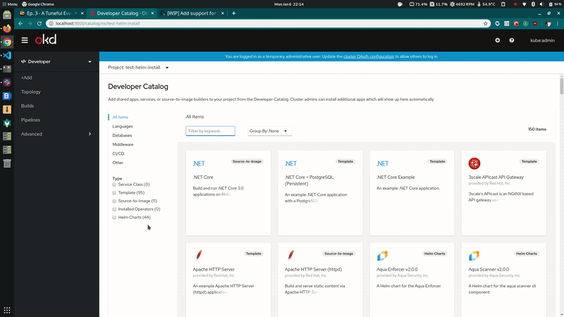 Add support for listing and installation of Helm Charts from Dev Catalog #3850