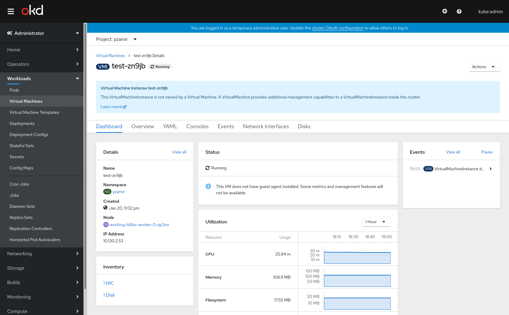 VM Details page: