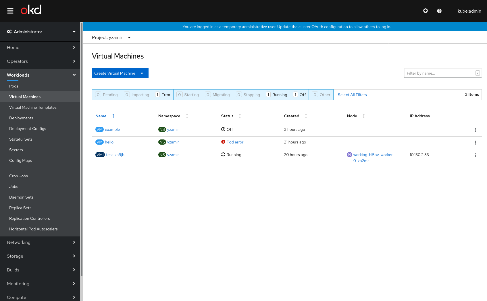 VM List page: