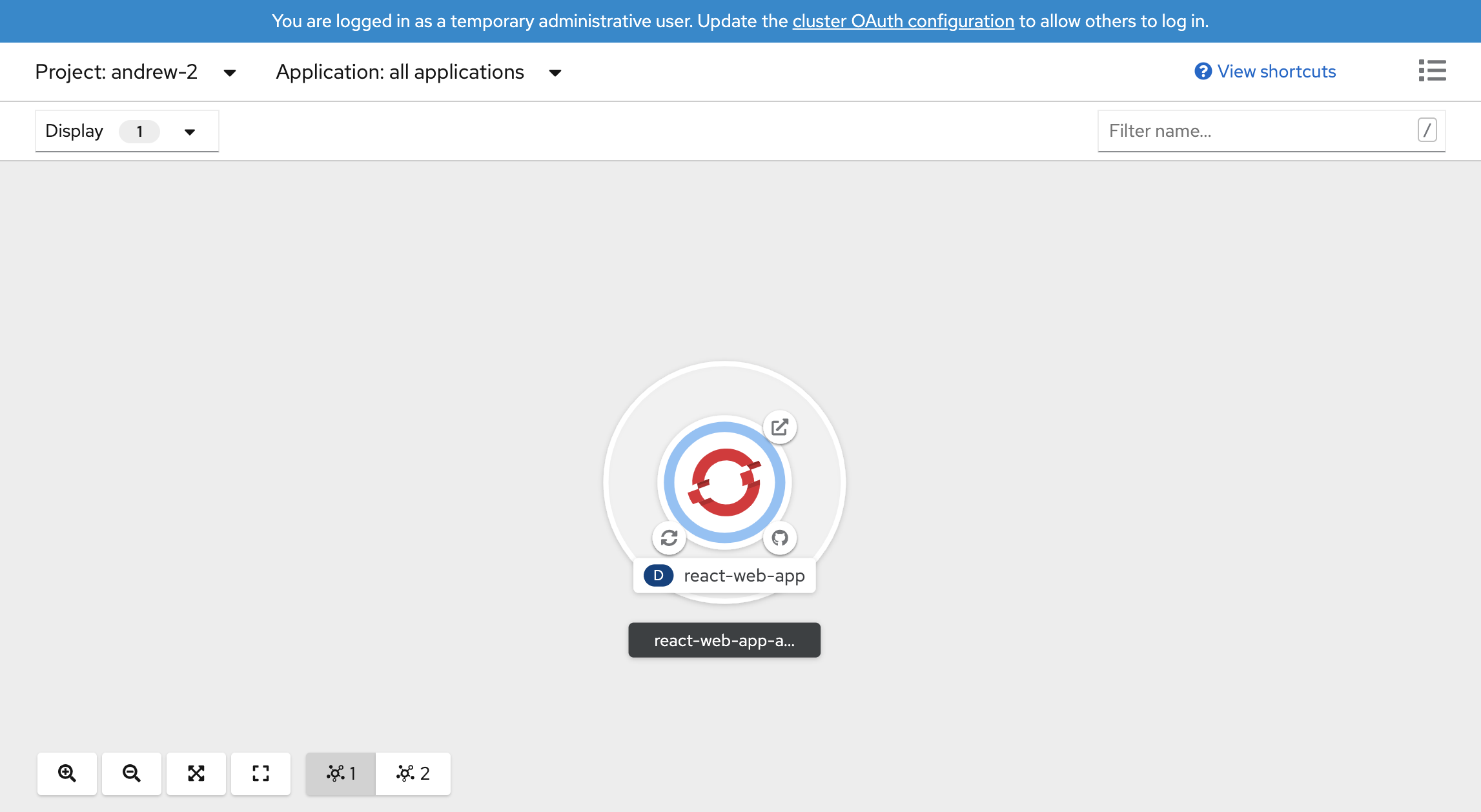 your-namespacewill need to be updated to your chosen project in no.1)http://localhost:9000/import/ns/your-namespace?importType=git&application=react-web-app-app&contextSource=core~v1~Deployment%2Freact-web-app(using https://github.com/nodeshift-starters/nodejs-rest-http)