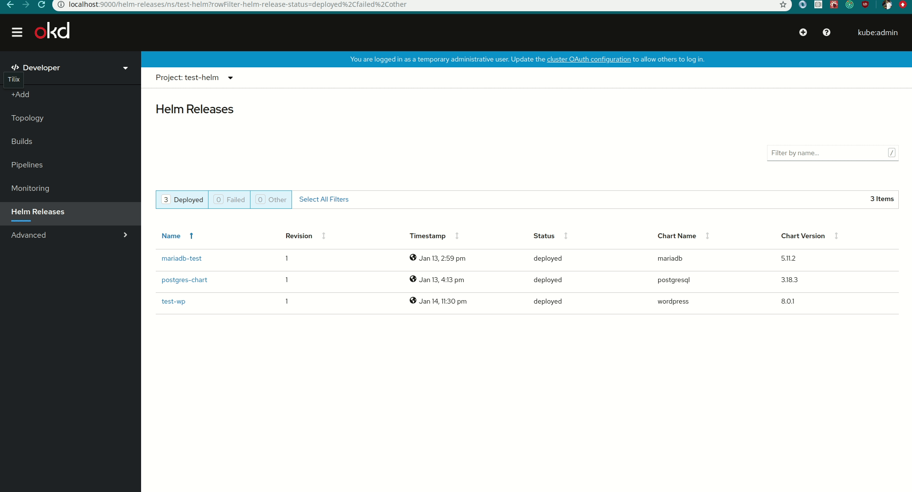 Helm Releases.HelmReleasePage,HelmReleaseList,HelmReleaseHeaderandHelmReleaseRow.HelmReleaseListcalls/helm/listAPI based on the namespace and Helm Release secrets fetch by firehose.firehoseresources chaning too often, adds a new utility for deep comparisons on dependencies inuseEffecthook.TextFiltercomponent from console.CheckBoxescomponent from console. The status based filtering also adds capability to filter multiplw statuses based on combined filterOther.@openshift/team-devconsole-ux