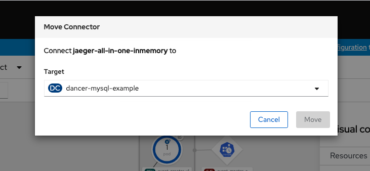The move action on a visual connector allows event source as a valid dropdown option as target for a deployment. and throws an error on submit (Move)