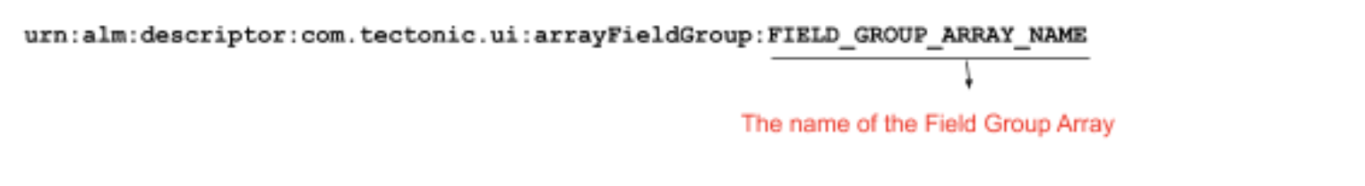 The “arrayFieldGroup” x-descriptor allows users to specify a Field Group Array. In the array, each element is a Field Group, users can add/remove Field Group. The following image demonstrates the structure of the Descriptor.