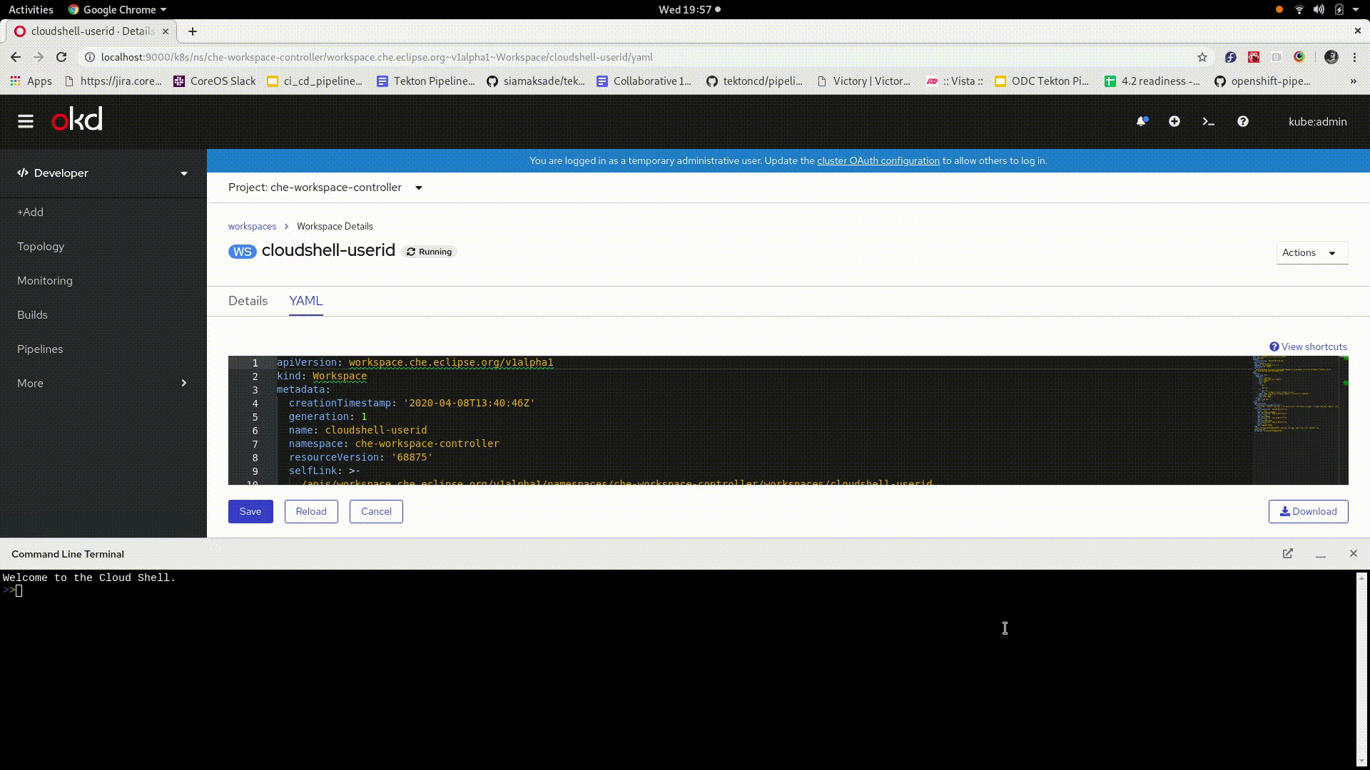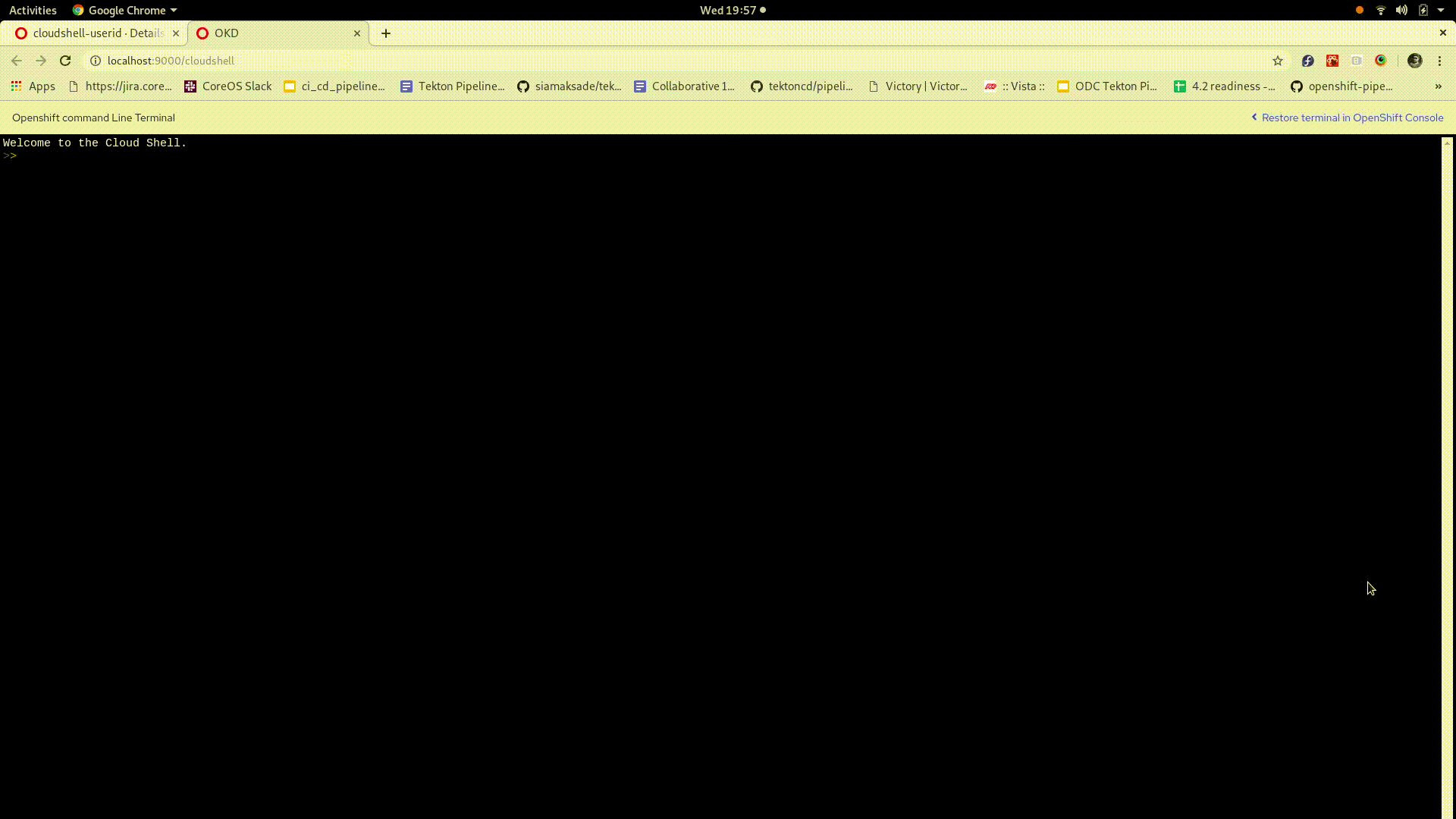 /cloudshellto load Terminal as a full page component at this URL.CloudshellTabcomponent with holds the Terminal and exposes it over the given route.To Do