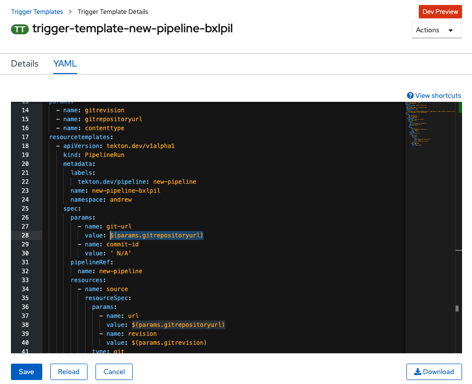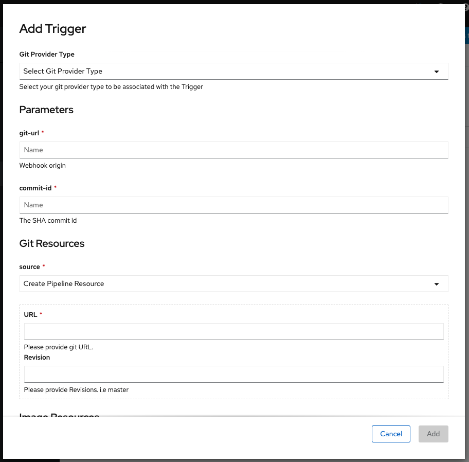cc @siamaksade @serenamarie125 I had to change the way the Pipeline Resources worked... I tried for several hours today to try and make a reuse of existing structure, but we cannot be creating resources mid-modal and still use that logic for Triggers as the TriggerBinding params cannot be referenced from a fully-created and stand alone PipelineResource. It was too much duplicate not to impact the way the start modal was done as well. I prefer it this way tbh, resources shouldn't be created mid-modal - as if you cancel out, you shouldn't have extra resources. |