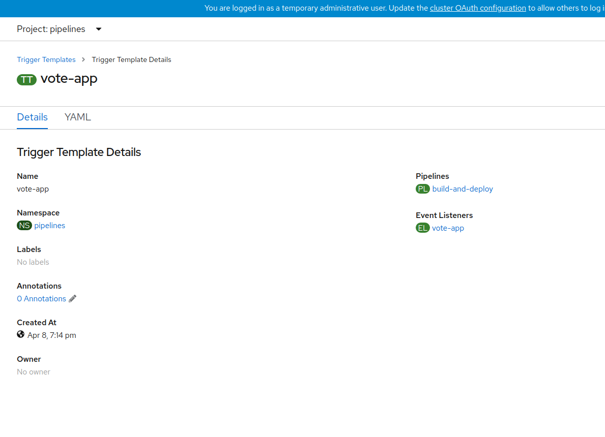 - On the Pipeline details page, can we move the Trigger Templates above the Tasks : https://docs.google.com/document/d/11vShZz7TX7b8YUyTG5zBMZXFnQmPEJ8nqUapCL70yyk/edit#heading=h.woem8ztgbvh5