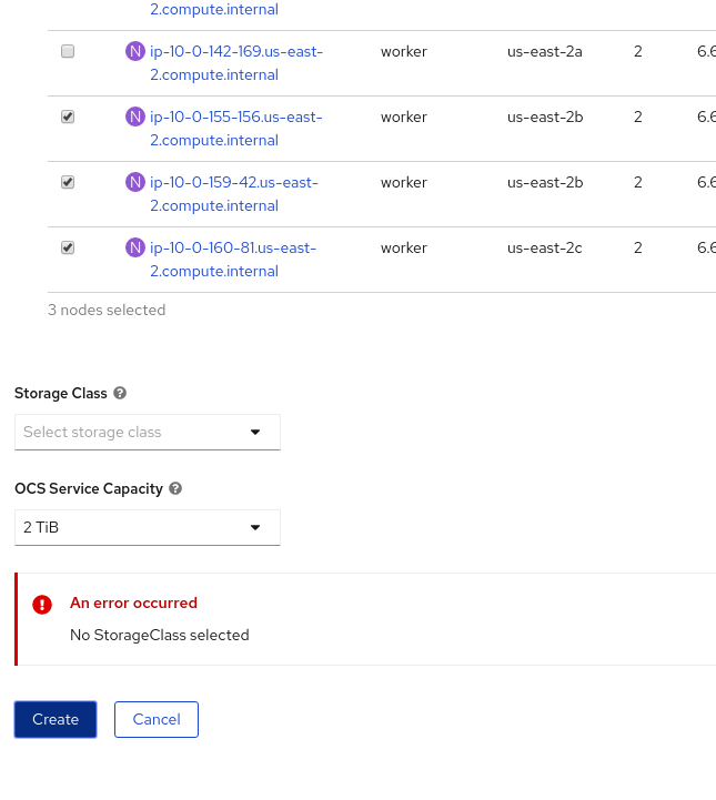 | handlePromise(makeOCSRequest(selectedNodes, storageClass, osdSize)) | |