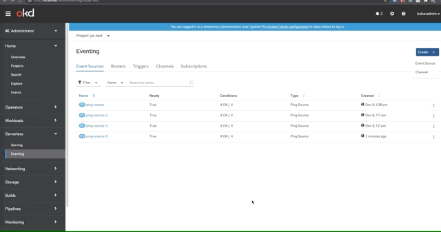 route on eventsource create from serverless eventing tab in Admin perspective goes to old route