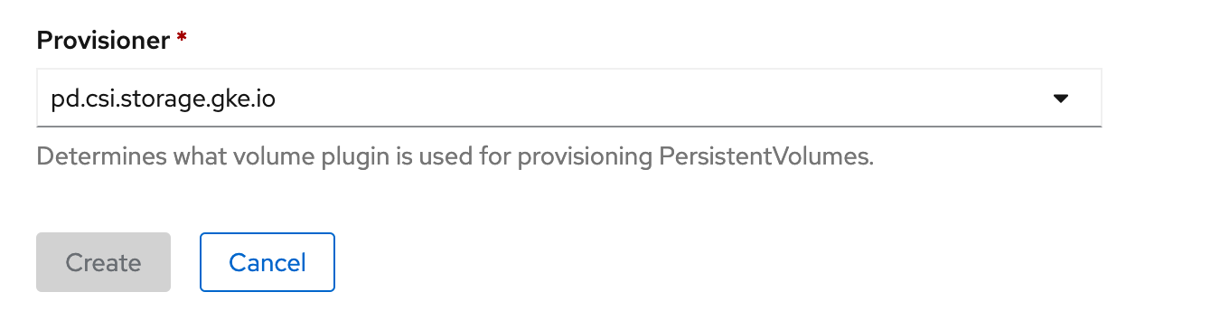 for example selecting block.csi.ibm.com or pd.csi.storage.gke.io provisioner will return