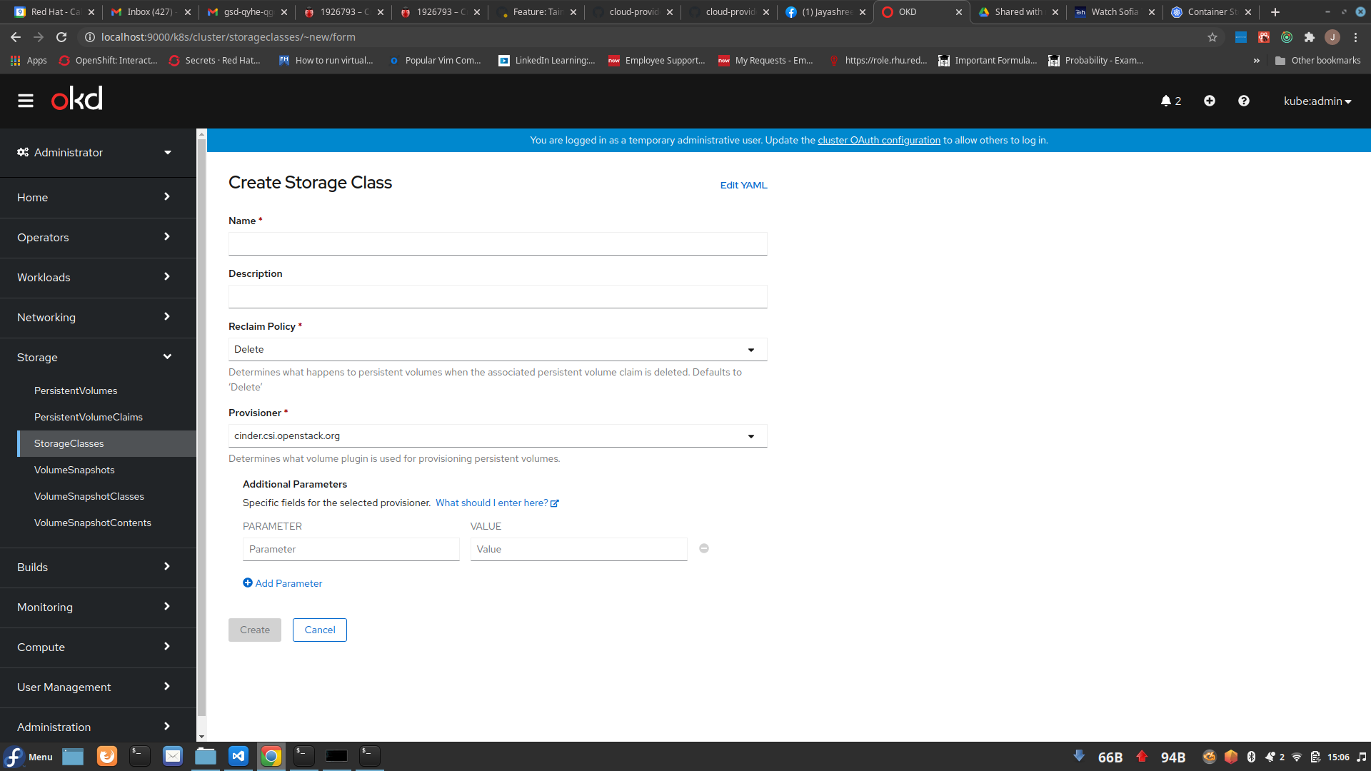 Additional parameters section is ONLY shown when kubernetes.io/no-provisioner is selected