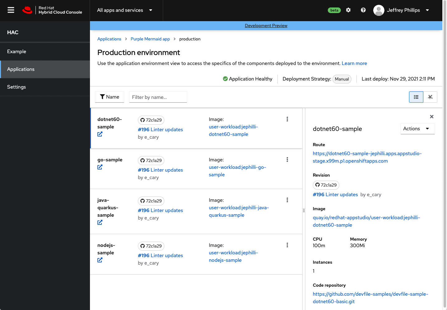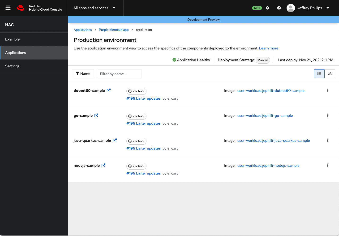Regarding this interaction, @jeff-phillips-18 mentioned that he might be able to implement the switching interaction in M7 as a separate PR, just so we could try iterating on the view to see how it looks and where any issues lie. If that PR can't merge in time or we decide not to go that route for now, at least this existing PR will have already merged with the environment view functionality as a drill-in for M7 and we can revisit in M8. I suspect when we implement the switching behavior, we will confirm that the space for the topology graph view and side panel is fairly constrained when the cards are expanded. My hope is that by iterating on that PR we can find an acceptable layout that offers the user sufficient space to interact with the environment’s components, and also still retains the card flow view of the components into the Development environment into subsequent environments, since I do think that is beneficial to orienting the user, and also very explicitly shows the user what environments’ details they are looking at (which seems to be important.) |