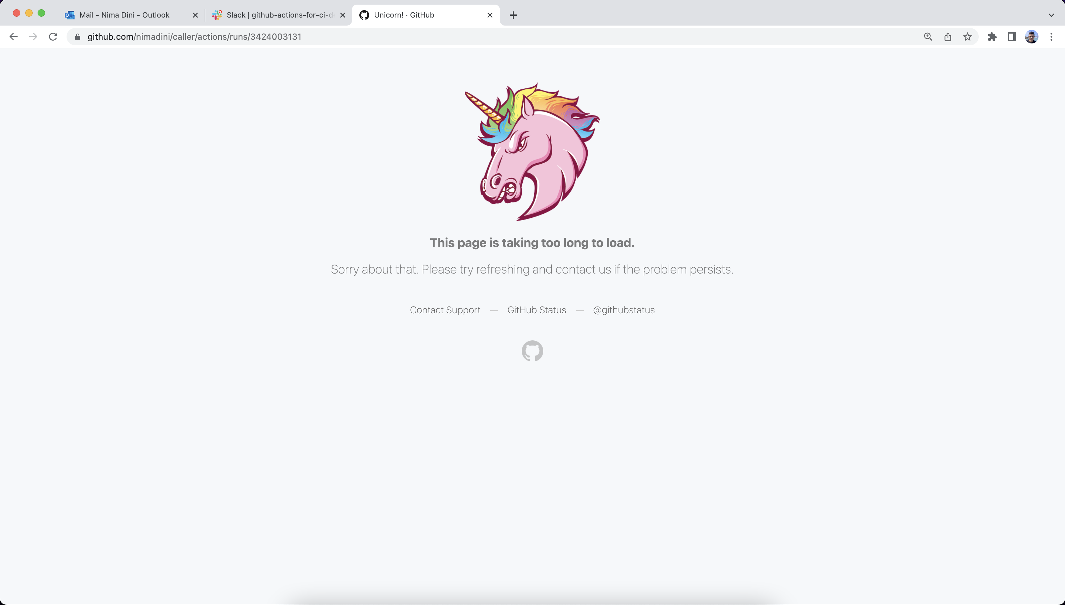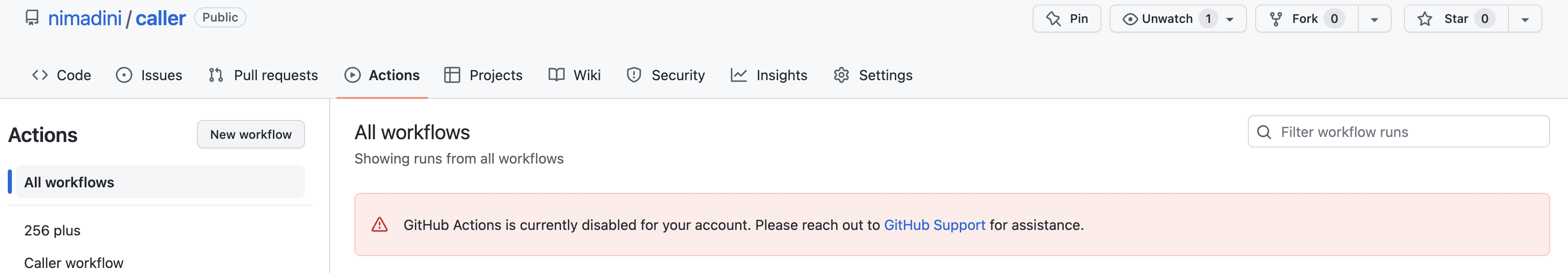 20 * 256 * 2 = 10,240). After about600successful matrix jobs, GitHub couldn't even load the workflow run page anymore and started to consistently time out (even though based on the actions tab the jobs are still running)!As a result of this testing, Actions got disabled for my user account! 😢 (Created an issue for support to help re-enable it.)