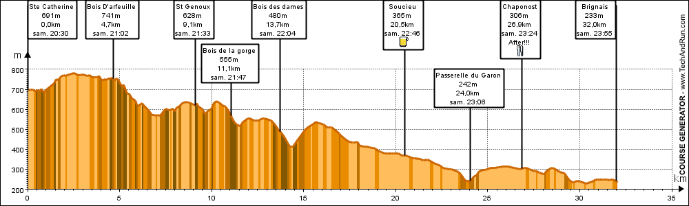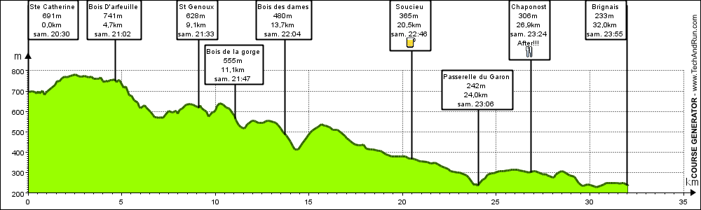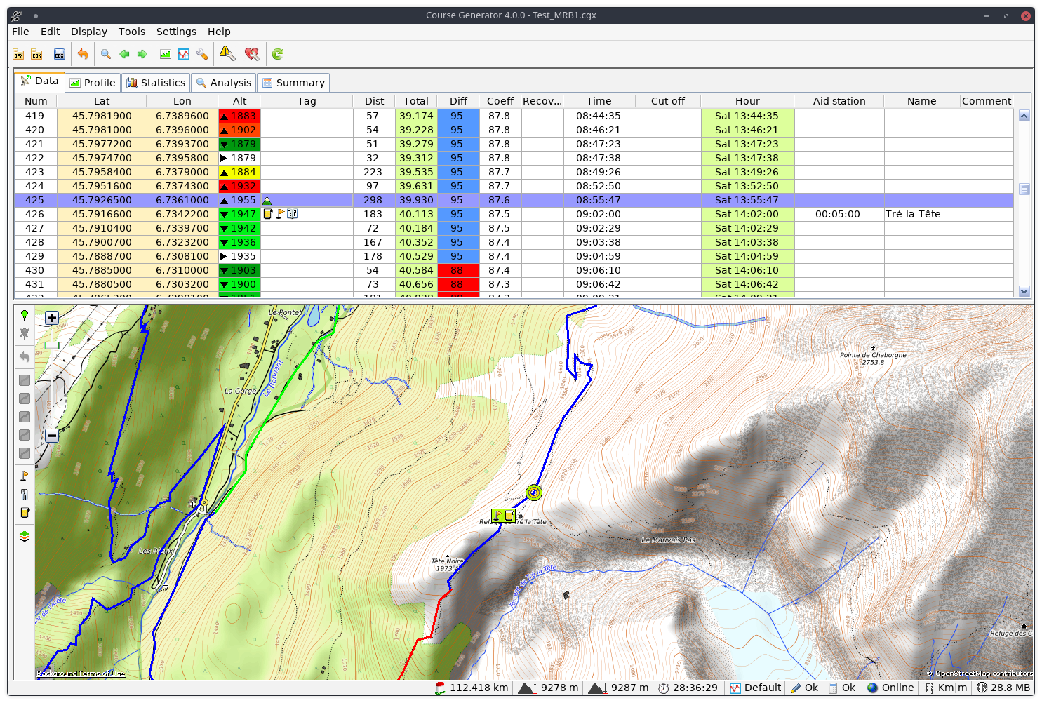 I created Course Generator in 2008 for my first 100 km ultra trail. Since then, I added a lot of features and it has been used by a lot of french ultra-runner. Up to the version 3.88 it has been written in C# and now java is used in order to be cross platform (Windows, Mac OS and Linux) and multilingual.