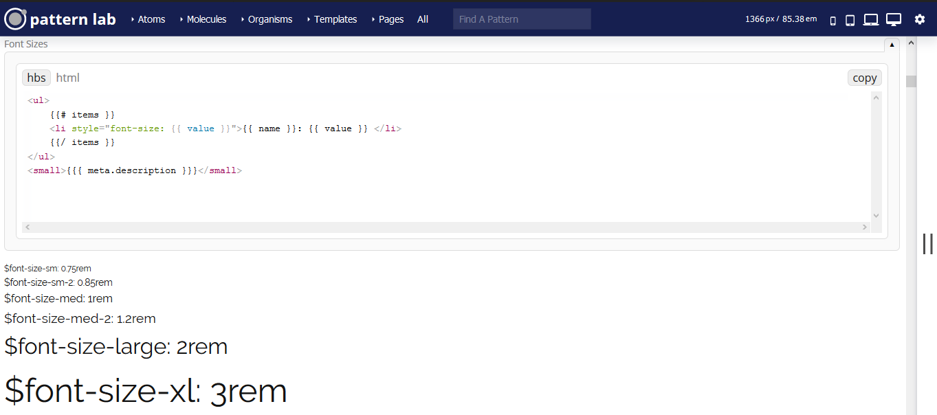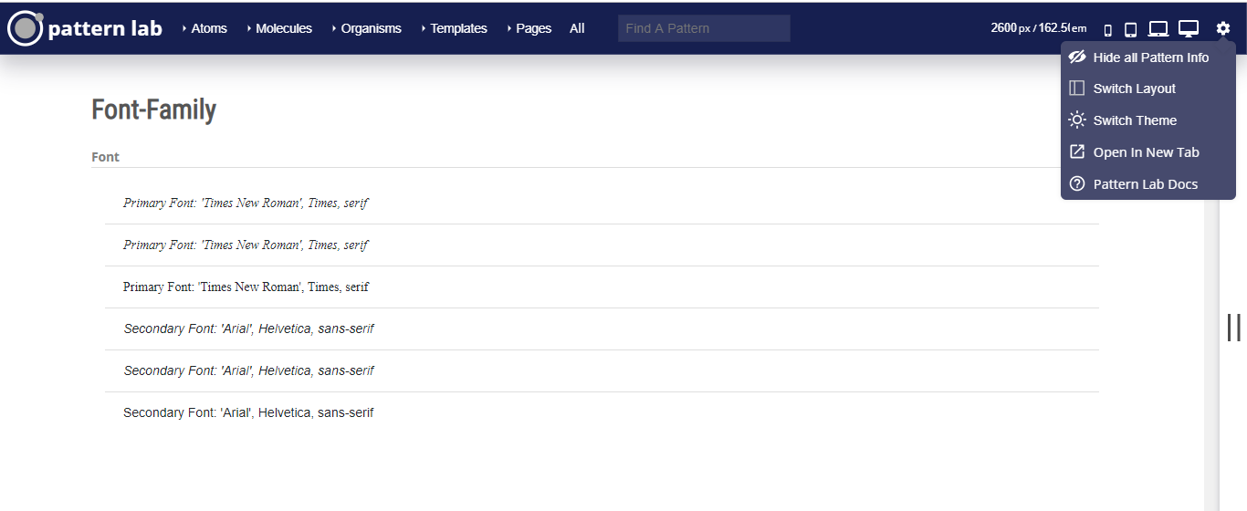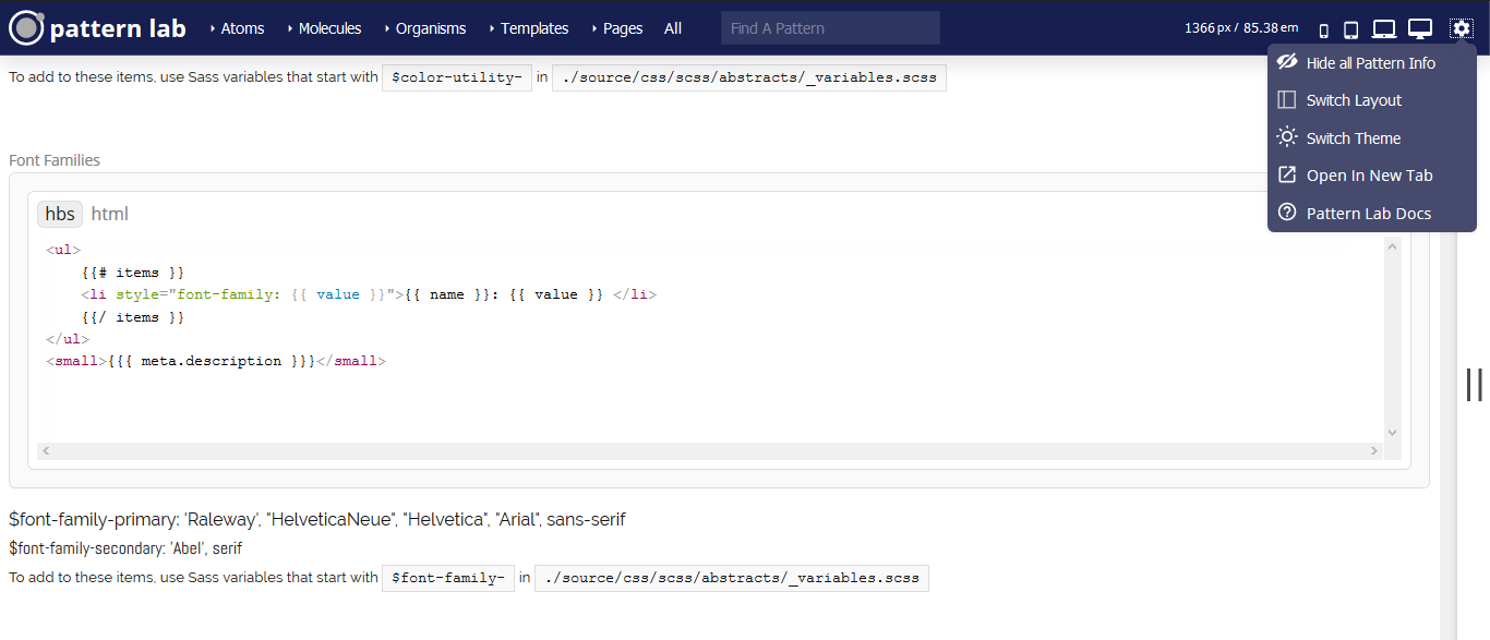But here once the page is rebuild using the command "npm run pl:serve".It shows pattern info for menus "templates,pages" by clicking menu show pattern info.But for menus like "atoms, molecules,organisms" it doesn't show the pattern info and by clicking the drop down icon from each pattern also it doesn't show the pattern info.