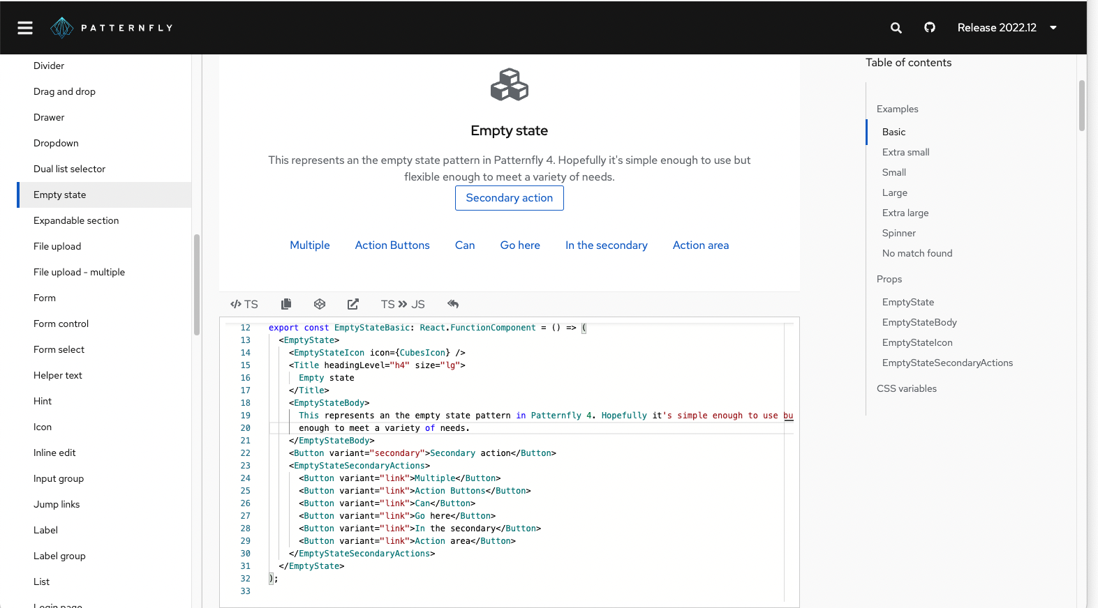 Create an EmptyState component, add a secondary button but do not add a primary button.