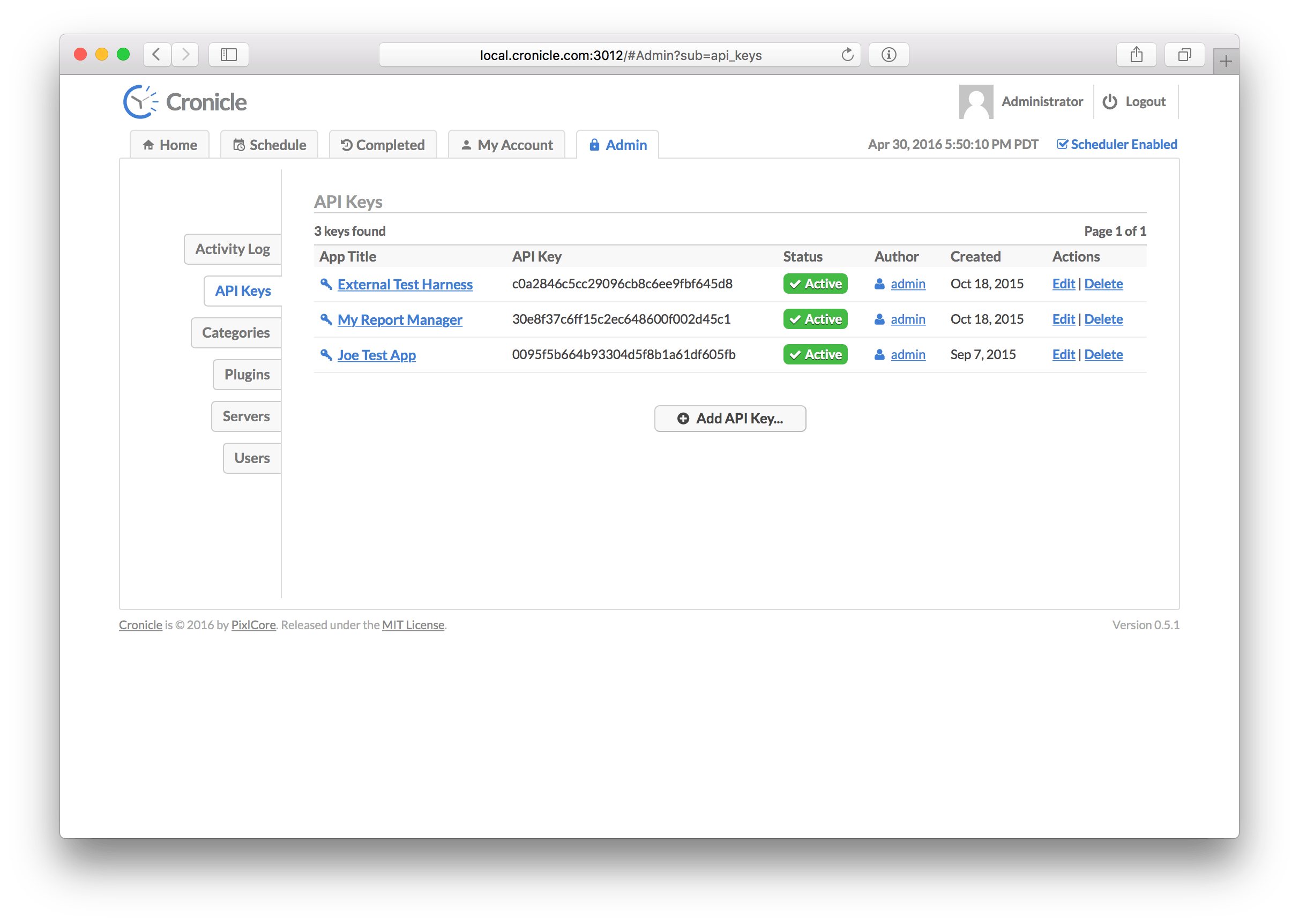| API Key | A special key that can be used by external apps to send API requests into Cronicle. Remotely trigger jobs, etc. |