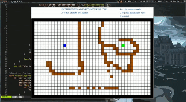 A pathfinding algorithm visualizer written in C++ using only GLUT. The following videos have been sped up 3X.