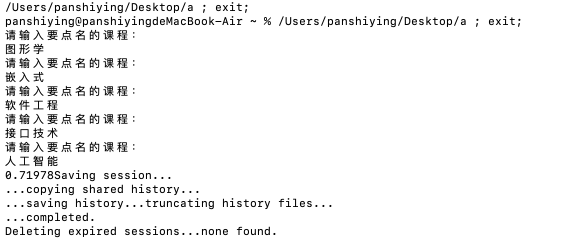- 运行a.cpp后将会提示输入五个课程名,每输入一个课程名会自动读取对应的csv文件,最后计算得出5门课程的E值