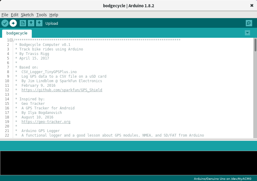 This guide will assume that the user is familiar with the Arduino environment. There are many guides available online for how to interact with this environment. Attempting to produce a new guide or to replicate one of the existing guides would likely not introduce anything useful to the experience of using the Bodgecycle Computer. If anything is unclear about how to proceed, please open an issue on GitHub.