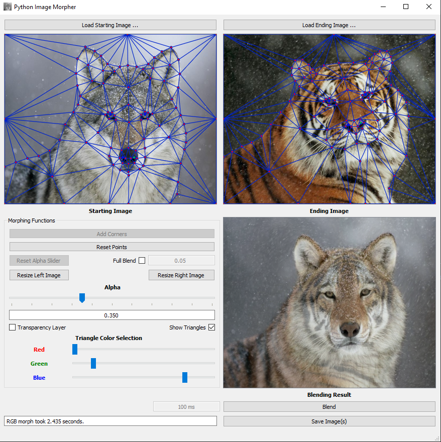 - Use the graphical interface to select your two images to morph
