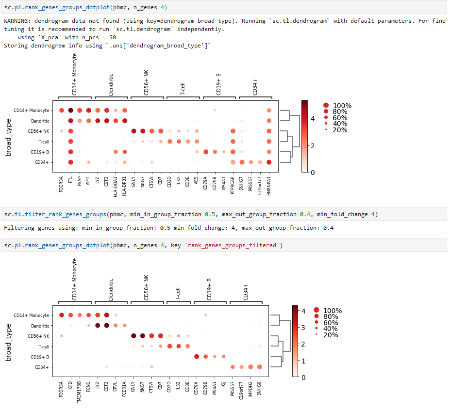 sc.tl.rank_genes_groupsbased on fold change and fraction of genes that are expressing the gene within and outside the group by categories.For example,