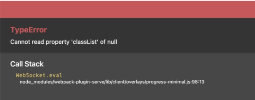 When used with https://github.com/pmmmwh/react-refresh-webpack-plugin this error shows up during incremental builds. ```Cannot read property 'classList' of null```