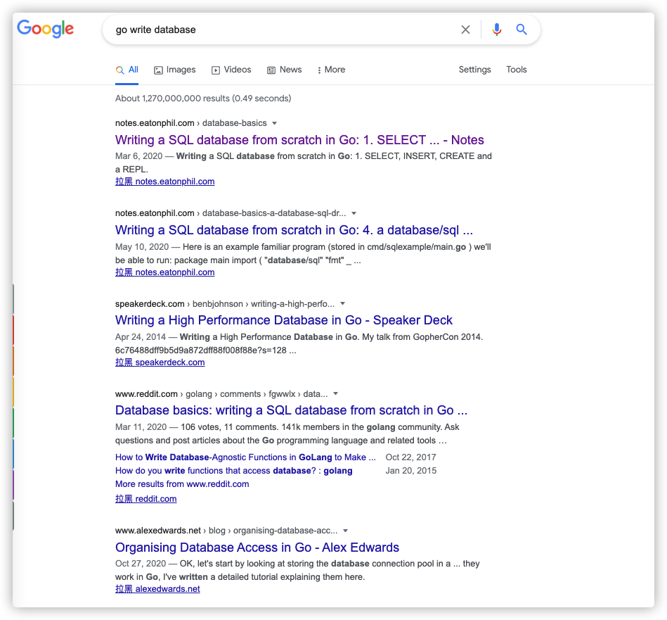 只要利用好搜索引擎,你可以找到各种语言实现的数据库玩具。