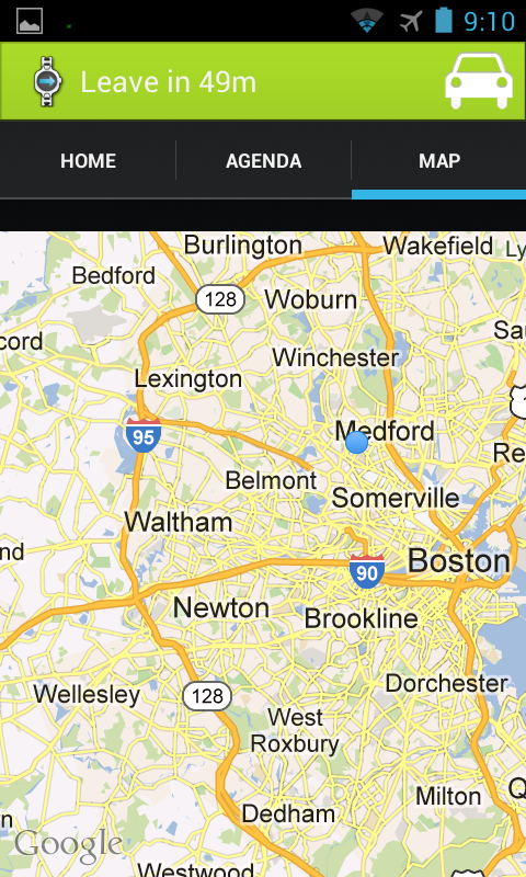 WhenToLeave is an Android app that ties into a user's calendar and provides alerts and notifications on when to leave based upon the user's location, transit options, and traffic.