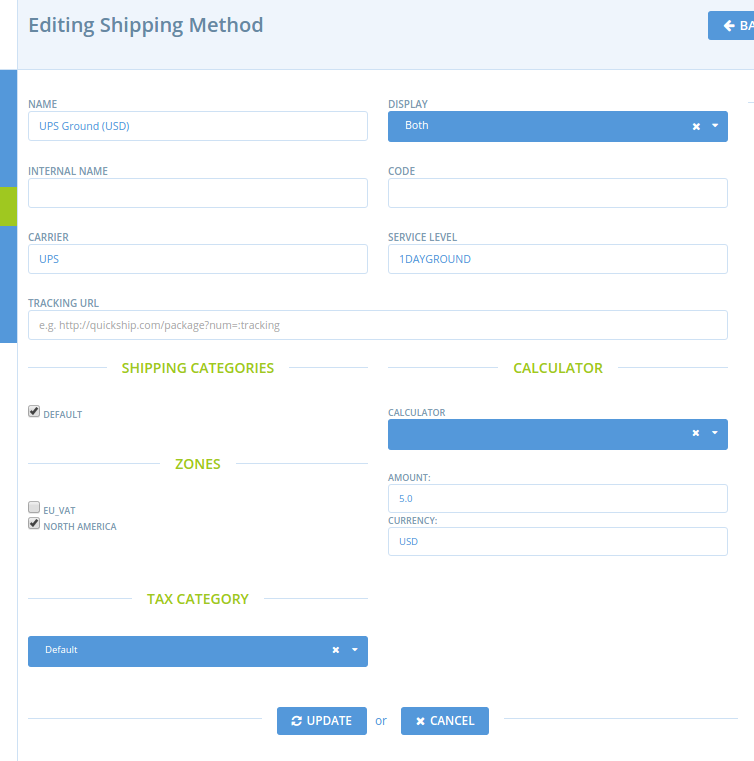 Allows users to set service levels and carriers for shipping methods on the backend.
