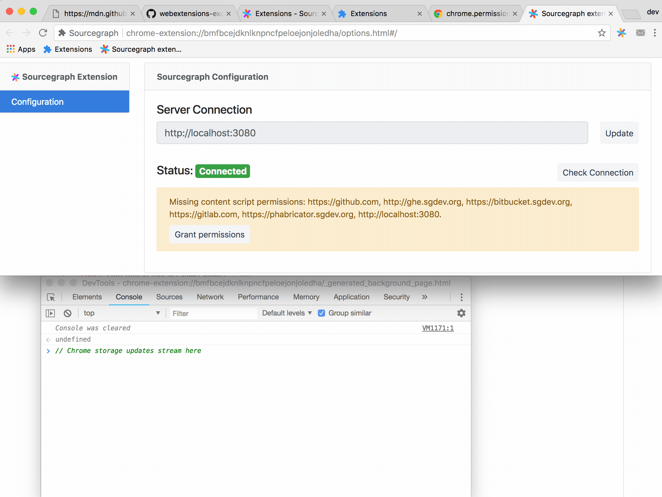 This connects the browser extension to Sourcegraph pages so that Sourcegraph can instruct the browser extension to edit client settings on its behalf.