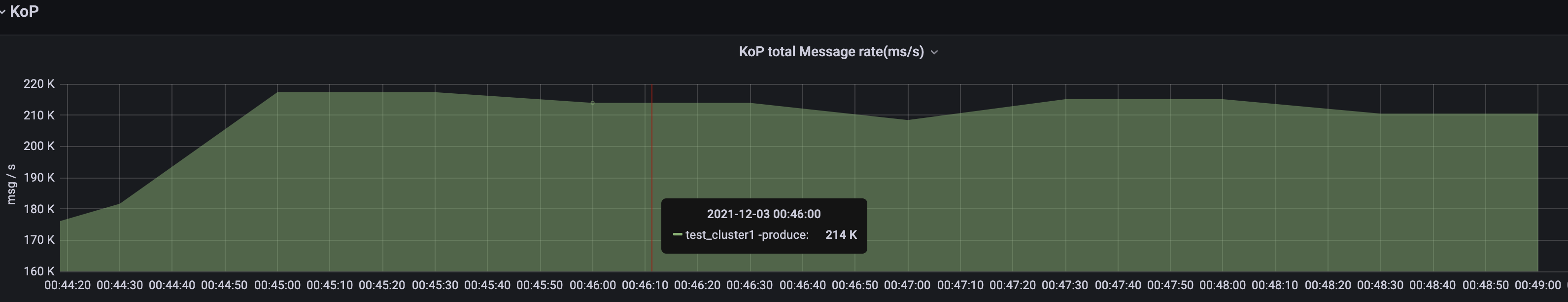 sendKafkaResponseThreads=1And send messages via Kafka CMD tool: $ ./bin/kafka-producer-perf-test.sh --topic my-topic --num-records 10000 --throughput 1000 --record-size 1024 --producer.config temp.properties