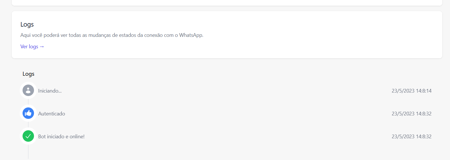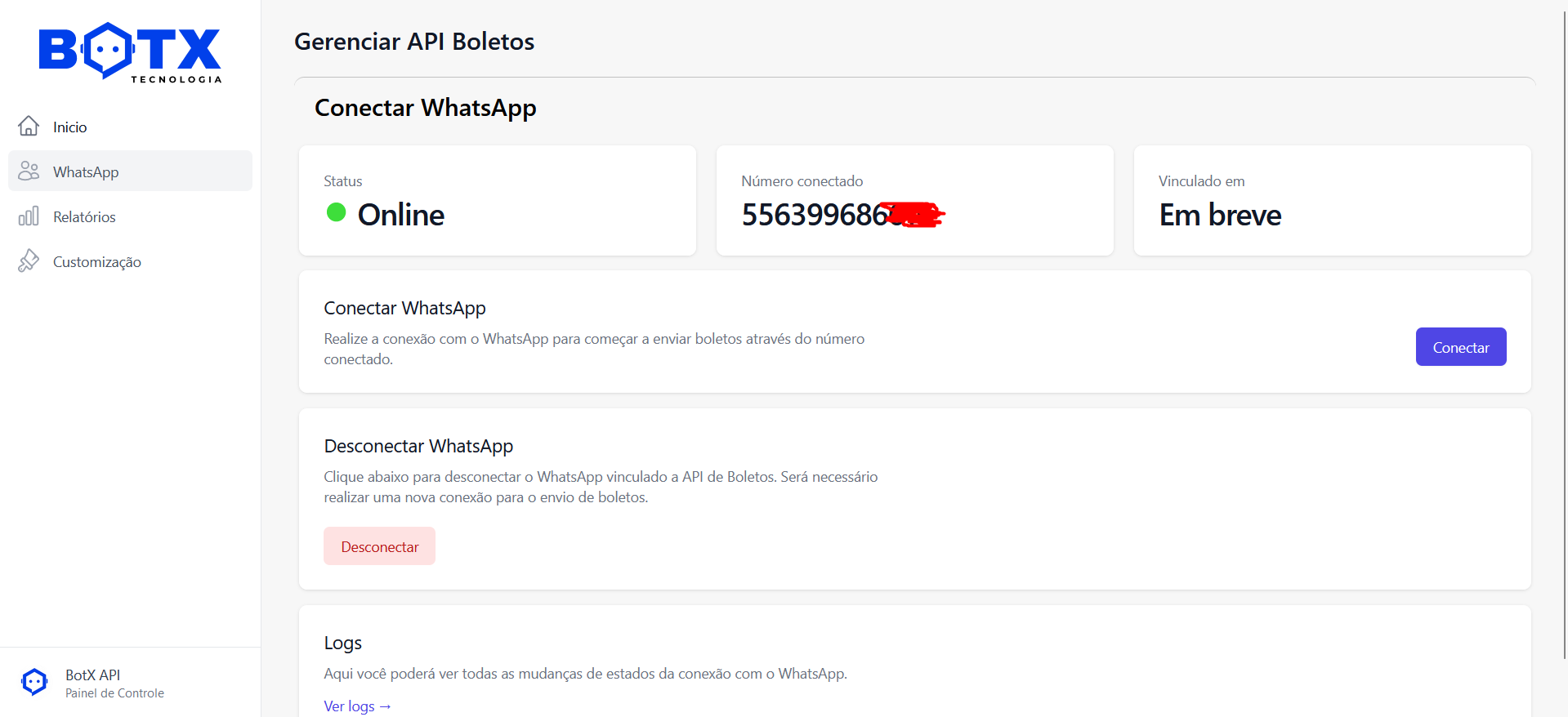 The project has a simple admin page to manage the connected number of whatsapp and see the logs.