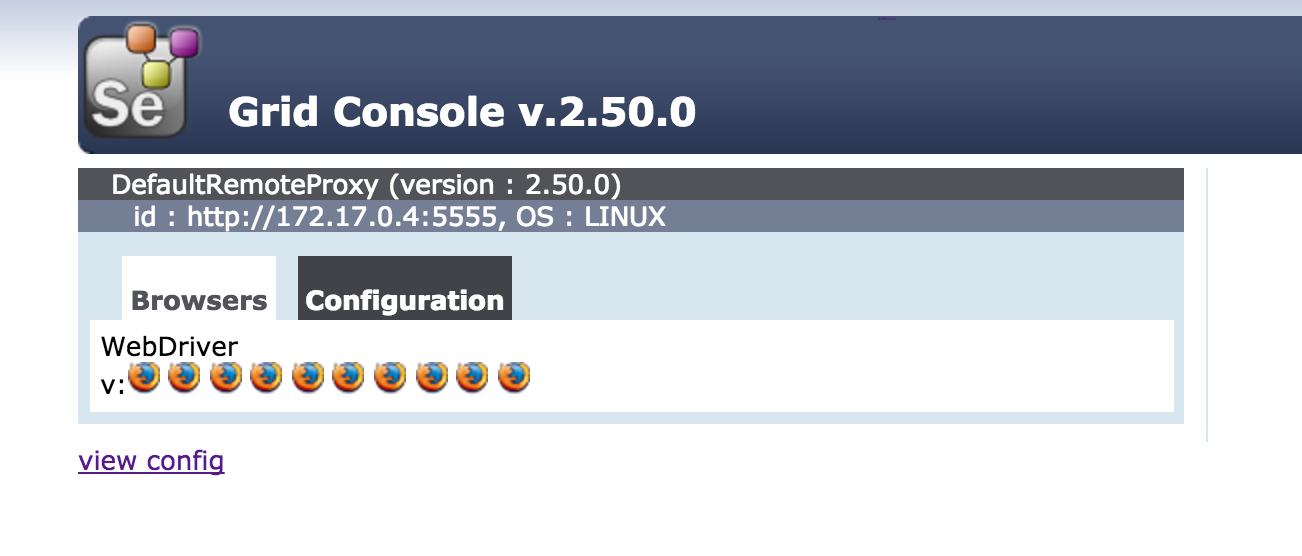 ** Selenium grid nodes** Now we have one hub and one node. We can see on stdout of selenium-hub container about details:
