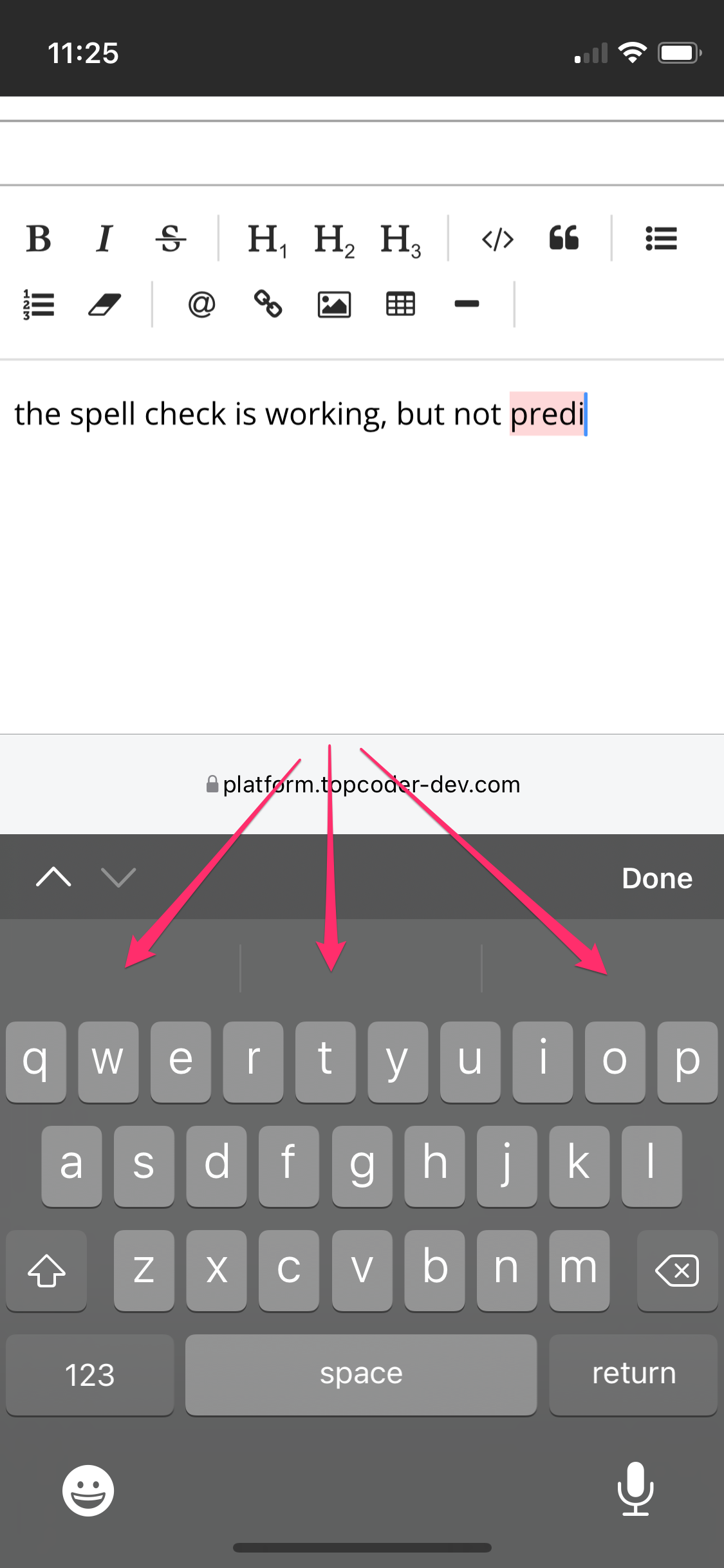 @atelomycterus - To go along with the spell check changes, can we enable predictive text on the editor text area? Right now it's not showing any suggestions, for some reason: